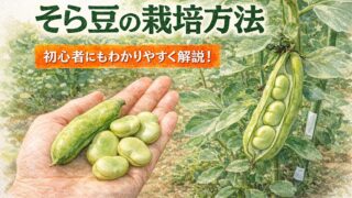 そら豆の育て方を初心者でも分かりやすく解説。種まき時期、冬越しのコツ、支柱や摘芯、収穫のタイミングまで家庭菜園で失敗しない栽培方法を分かりやすく紹介します。プランター栽培にも対応。