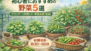 初心者におすすめの夏野菜5選。プランター限定で失敗しにくい家庭菜園を解説。栽培開始時期・難易度・スタートカレンダー付きで、ベランダ菜園でも安心して始められます。
