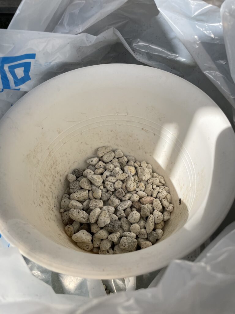 底石と土を整えることで、ハーブがのびのびと根を張れる環境ができます。手間はかかりませんが、後の生育を大きく左右する大事な準備です。