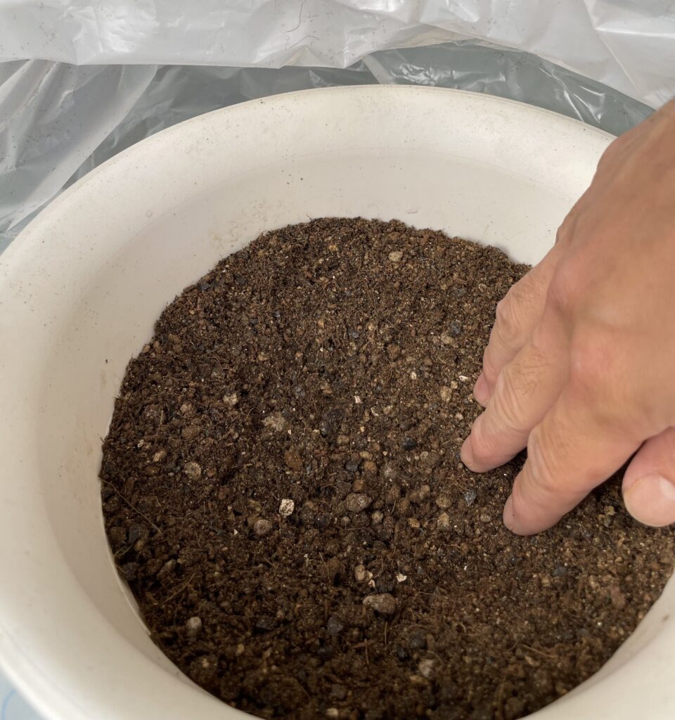 軽く鉢をトントンとし、少しかさが減るようなら足してあげてください。