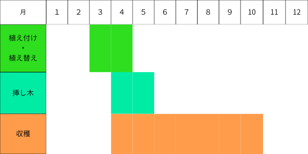 最盛期の春から秋にかけて、いつでも収穫可能です。